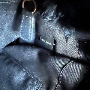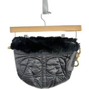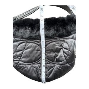 Coach Signature Satin Quilted Rabbit Fur Trimmed Hobo Handbag Black