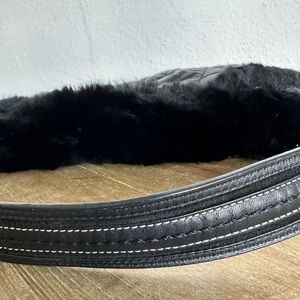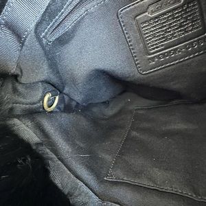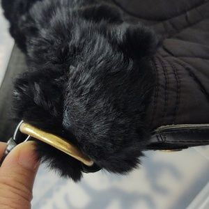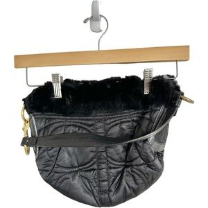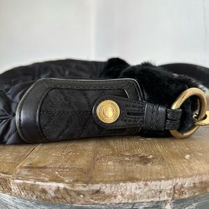 Coach Signature Quilted Rabbit Fur Trim Hobo Handbag Black