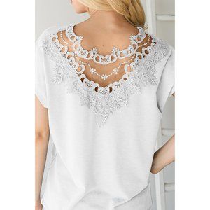 Stone Grey Crochet Back Detail V Neck Short Sleeve Top
