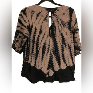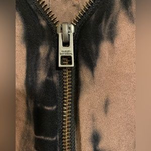 Zippered vneck Harley Davidson tie dye shirt top blouse. Women’s size XL. Bronze zipper pull. HDMC patch on bottom right in front. Keyhole back. There is some loose stitching at the bottom of the keyhole (see pics) can easily be repaired.