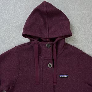 Women's Patagonia Worn Wear Better Sweater Hooded Long Sleeve Button Up Front Light Balsamic Red Purple Burgundy Coat Jacket. 100% Recycled Polyester . Style 25850.
