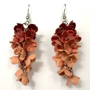 I handcrafted these floral earrings out of polymer clay and they are brand new and fresh out of the oven. Lightweight, comfortable dangle earrings with hooks. A cluster of flowers hangs down in ombré shades of red-rust, coral, orange and peach. Each flower is carefully handmade and attached. There are some minor imperfections that add character to the handmade design and make them truly one of a kind. Gray for fancier events or casual. Great for a gift as well.