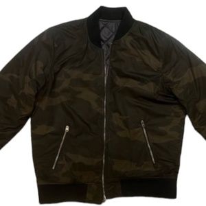Reversible jacket. Camo on one side, the other is quilted nylon.