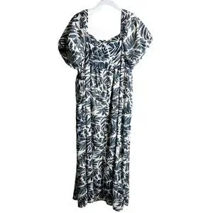 Hayden Puff Sleeve Botanical Print Square Neck Maxi Dress, Size Large