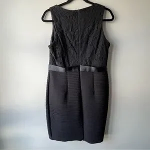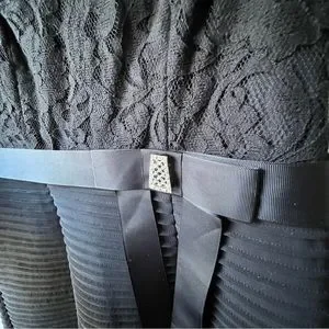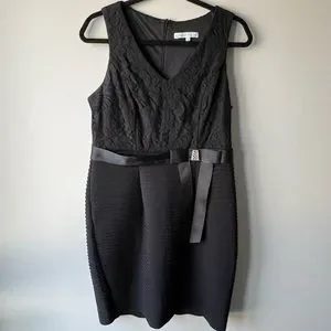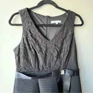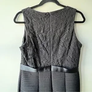 Cleo Black Lace Top & Textured Pleated Skirt Ladies Plus Size Sleeveless Lace V-Neck Cocktail Dress petite size 12