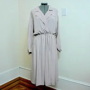 Vintage Midi Shirt Dress with elastic waist, size 10
