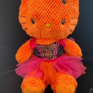 Darling Hello Kitty Witch with pink and orange costume dress, black witches hat, broom and black shoes from 2011. No bow. This Hello Kitty has been discontinued and is a rare HTF stuffed animal. Excellent pre-owned condition. 18”