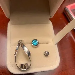 Sterling Silver Earring Jackets and costume blue stud earrings.