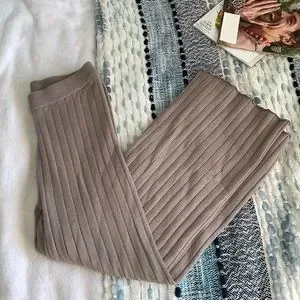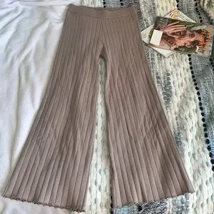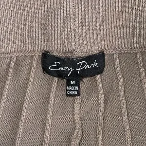 These Emory Park pants are super comfortable and have only been worn a few times so they’re still in good condition. High-Rise fit with somewhat of a flared leg. Lettuce hem with ribbing throughout. Elasticated waistband and made from stretchy material. Labeled as a M however these fit on the smaller side and are more like a 2/4. Mushroom color.