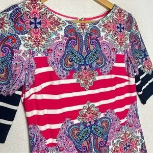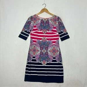 Eliza J Pink Multi Floral Paisley Strip Women’s Shift Knee Length Dress Size 4