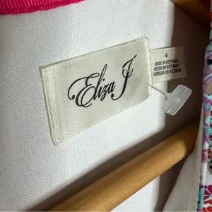 Elevate your wardrobe with this stunning Eliza J shift dress in a beautiful floral paisley strip pattern. The knee length dress, designed for women, features a vibrant pink color that effortlessly complements the floral theme. The dress is available in size 4 and is perfect for a regular size type.