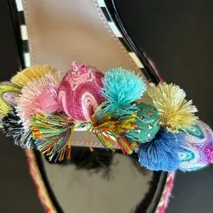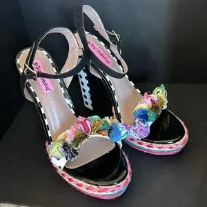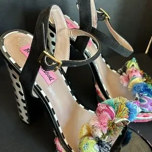 Betsey Johnson Polka Dot Pom Pom Sandal Heels Colorful Sz 7.5