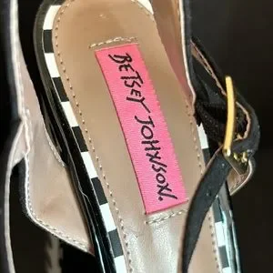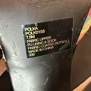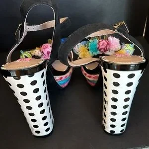 Shoes are super fun, colorful, and in great condition Black and white Polka Dot Heel approx 5" high