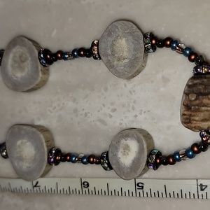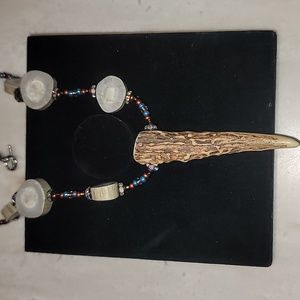 Boutique Deer Horn necklace, unique find and one of a kind! Measures 14 inches, these are genuine deer antlers accented by assorted beads. Circle bar clasp.