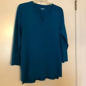 Land’s End 100% cotton 3/4 sleeve Tee Shirt tunic medium teal. EUC. Approximately pit to pit 20.5” shoulder to hem 25” in front and 26.5” in back (slightly longer in back by design), at bottom hem side to side 21”