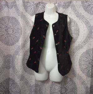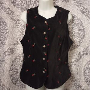 Vintage Stonebridge Goth Cotton Black Rose Velvet Vest Size 10