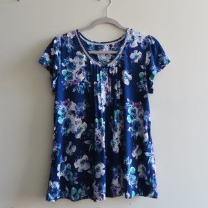 Cozy and coordinating, this women's Croft & Barrow pajama top and pajama capris sleep set will have you drifting off in complete comfort. This blue sleepwear set with floral print is perfect for spring. Size: Small. Pictures show pit to pit size of top and total length of bottoms. Pre-worn very good condition.