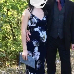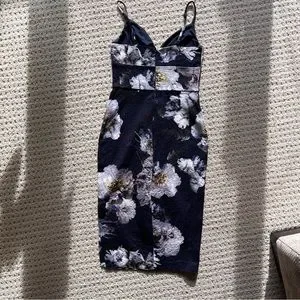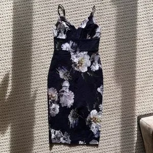 Dynamite floral dress. Adjustable straps. Size XS. Slit on side. Stretchy material makes this dress comfortable to walk in. Good condition. Only worn once!