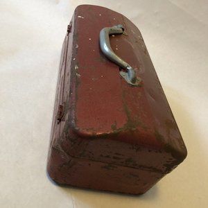 Vintage Old Metal Fishing Tackle Box Red w/tray cabin rustic planter