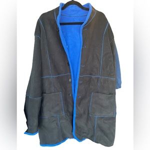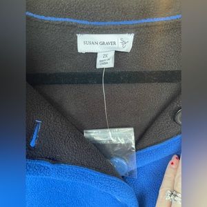 Black and blue reversible fleece jacket. Buttons up the front. 2 front pockets. NWT
