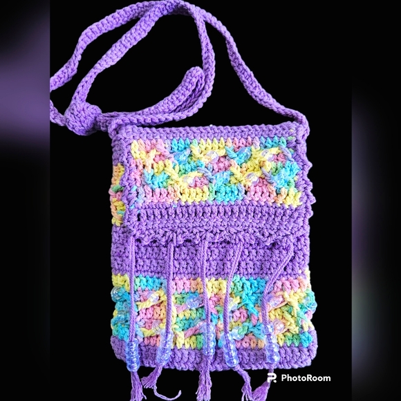 Crochet crossbody small bag with beads. Lined fully inside, with outside beads very feminine and chic! Excellent condition!