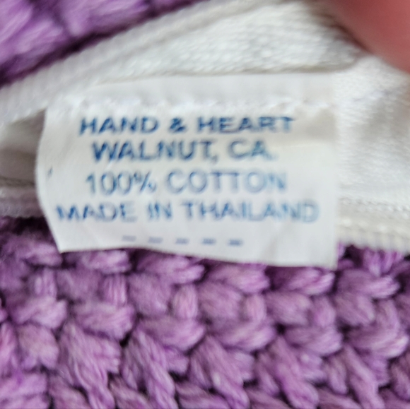 Hand and Heart Crocheted crossbody beaded bag, purple.