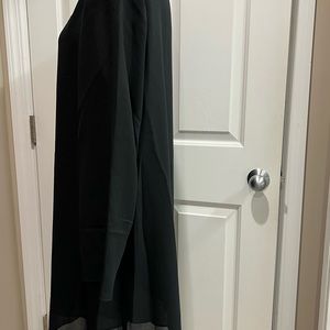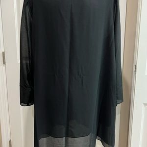 Very pretty vintage black formal top by Julian Wilder. Sheer top fabric lined second layer. Beaded V neckline. Long sheer sleeves. Polyester. Size 20. Shoulder pads. In preowned good condition.