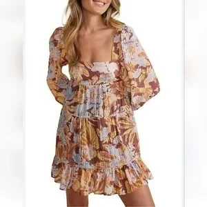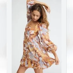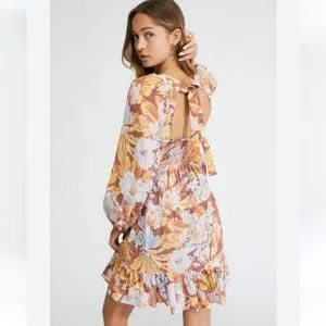 Serena Mini Dress by MINKPINK is a romantic, trans-seasonal garment. It features an exclusive print on a textured fabrication.