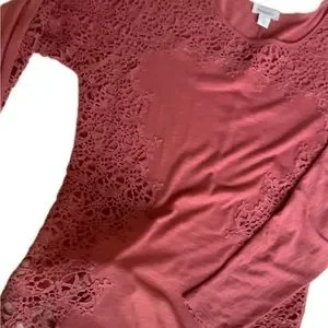 Long Sleeve Top with embroidered crochet. Coral color. My clothes are in excellent condition, make me an offer.