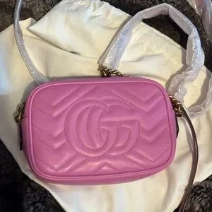 Candy Pink GG Marmont Matelassé Camera Bag
