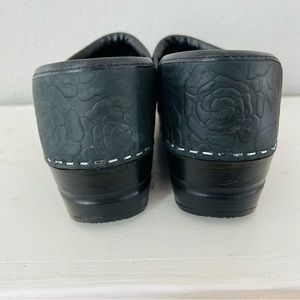 Sanita Tooled Embossed Floral Rose Black Sueded Leather Clogs 37