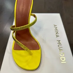 Amina Muaddi Brand New Yellow Crystal sandal. Size 37.