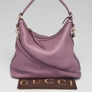 💕Authenic Gucci Mauve Leather Hobo Shoulder Tote Convertible Detachable Strap
