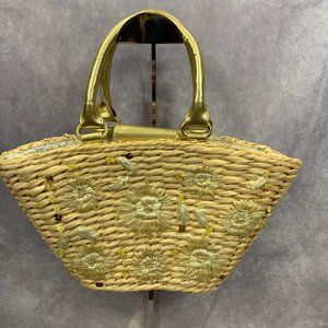 Very Pretty Beaded Straw Purse with Woven Daisy design in Excellent Used Condition.