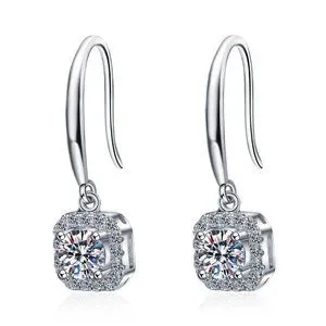 Certified 1ct. t.w. Moissanite Diamond Halo Drop Earrings NEW