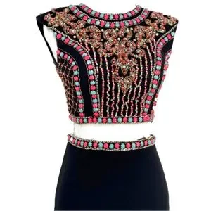 Black Beaded 2 piece Jovani size 4 gown beaded & Rhinestones