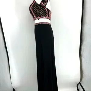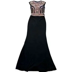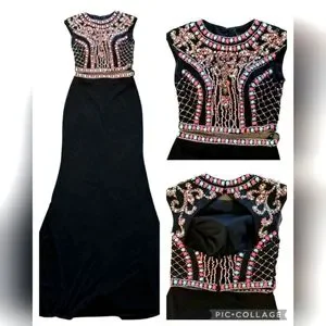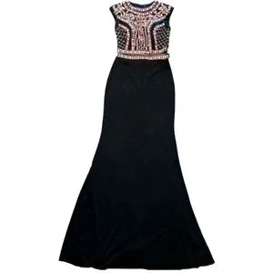 JOVANI 2-piece Black Beaded Mozaic Rhinestones Evening Gown Size 4
