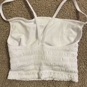 Sporty yet chic, this textured tank is featured in a cropped silhouette and ruched fabrication with a scoop neckline and V-shaped backstraps.