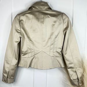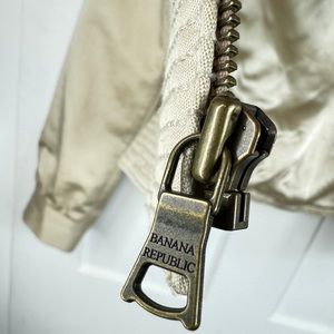 Very cute Banana Republic jacket, beautiful soft/shiny cream color, zipper front.