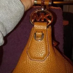CAN BE SOLD SEPARATELY...pebbled leather caramel brown Michael Kors purse. gold hardware zipper opening, there's a snap opening also in the front side of the purse.. the inside.. two slot pouches on the each side. handles are in great condition bottom of the bag corners are rubbed a little bit.. wallet has a little bit of cracked leather soon as you open it on the bottom of the top flap. the zipper pull is unbranded on the wallet. zippy part pockets..snap closure... back has a slap pouch the....length of the wallet.. purse has an unbranded crossbody strap to match. gold's hardware. not scratched or tarnished at all. the only call out is the cracked leather on the wallet.