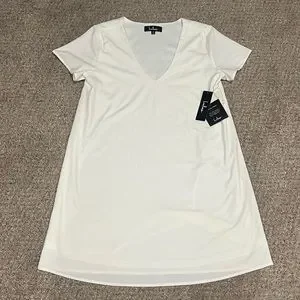 The short sleeves and deep V-neckline add an alluring touch, while the chic shift silhouette ensures a sophisticated appeal.