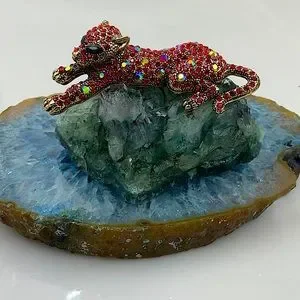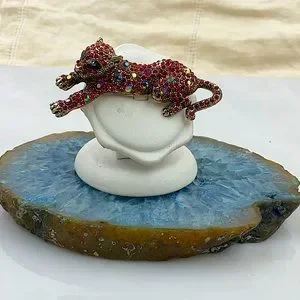Betsey Johnson Red Bejeweled Leopard Pendant/Broach (3”Lx2”W) With Sparkling Aurora Borealis, Red & Black Sparkling Crystals. Removable 26” Gold Necklace With 2” Ext. & Iconic Betsey Johnson Gold Heart. Never Worn. Brand New, With Tag. Excellent Condition.
