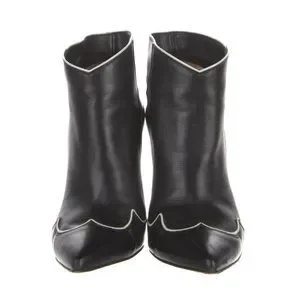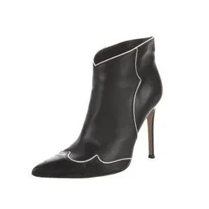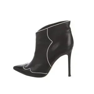 Gianvito Rossi Black with White Trim Leather Ankle Boots Size 37EU