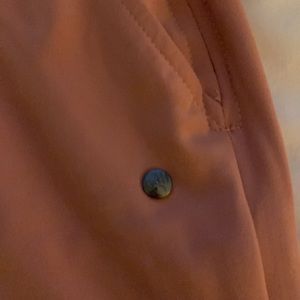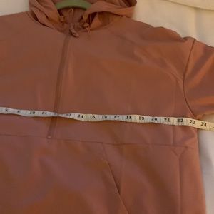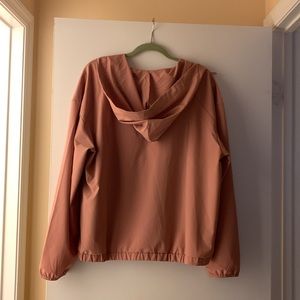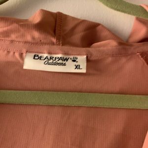 New without tags purchased to go hiking and never went,,recent extreme weight loss so it doesn’t fit. The color is a pretty mauve pink. Light weight packable shorts have three pockets in the very front one of them zips for keys or ID. Jacket has a front pouch pocket and hood. Material is lightweight and soft by protect you against the wind and the sun.