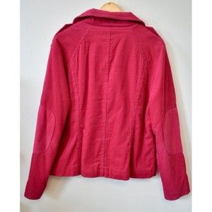 Vintage Tommy Hilfiger jacket / pea-coat / shacket. Vivid pink wide-whale corduroy with a fleece / sherpa lining. There are two front pockets and an interior pocket. Note the cute elbow patches. It is in very good condition. Please see photos.