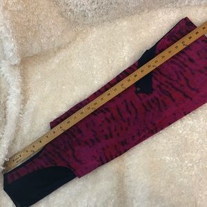 Vintage Y2K Armani Exchange sleeveless tunic top featuring contrasting flip pockets detail. The front panel boasts an abstract animal in purple / navy blue, reddish orange and magenta print on fuchsia fabric, while the back panel is crafted from navy stretchy fabric with a seam in the middle.