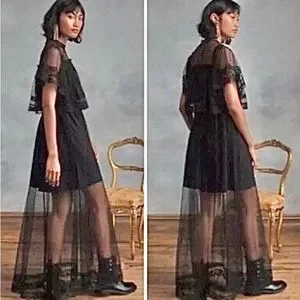 NWT Happy Nature illusion semi sheer lace black maxi dress