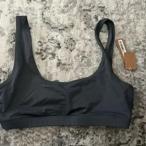 The signature SKIMS scoop neck top, now available as a classic swimwear style. A flattering scoop neck bikini top with an underband and thick straps for added support, this style is made for versatile wear. Fits true to size.