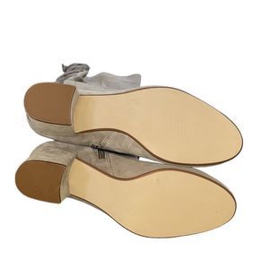 NWOB Steve Madden Hansil over the knee gorgeous boots tan leather suede with leather laces, coquette up the back to fit any size shape leg. women size 9. New no box. In pristine condition with small blemish on front of boot.