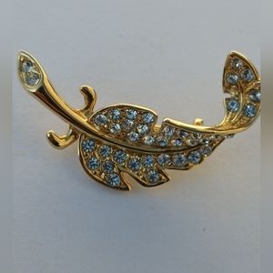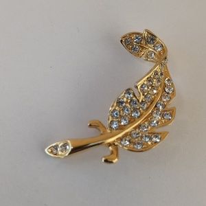 vintage Gold tone rhinestone feather pin/brooch.